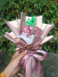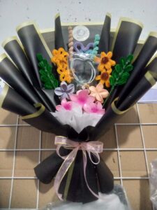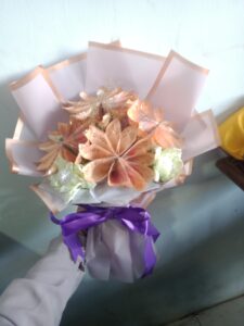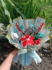 Setiap buket kami dibuat secara handmade, tanpa mesin, tanpa cetakan. Hanya tangan, ide, dan hati. Kami juga menerima pesanan buket uang, sebagai bentuk hadiah yang unik dan berkesan.